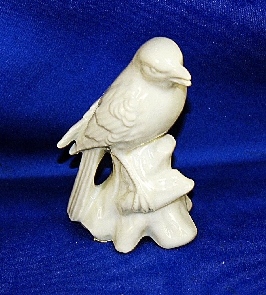 White Porcelain Bird on Log, 4 3/4"x2 3/4"